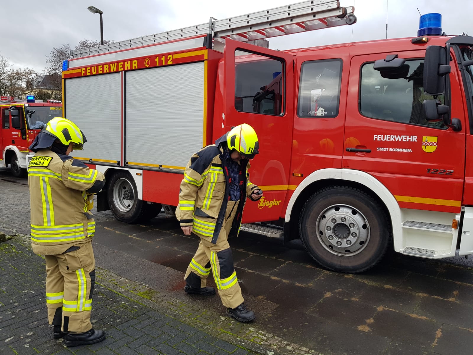 Weitere Kräfte: A-Dienst (Wehrführung), Bornheim DLA(K) 23/12, Merten LF 10, Polizei, Sechtem GW-Logistik, Sechtem LF 10