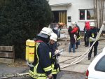 Beim Eintreffen der Feuerwehr brannte ein Elektrogerät im Innern des Gebäudes. Dieses wurde unter umluftunabhängigem Atemschutz mit Hilfe der Kübelspritze gelöscht.