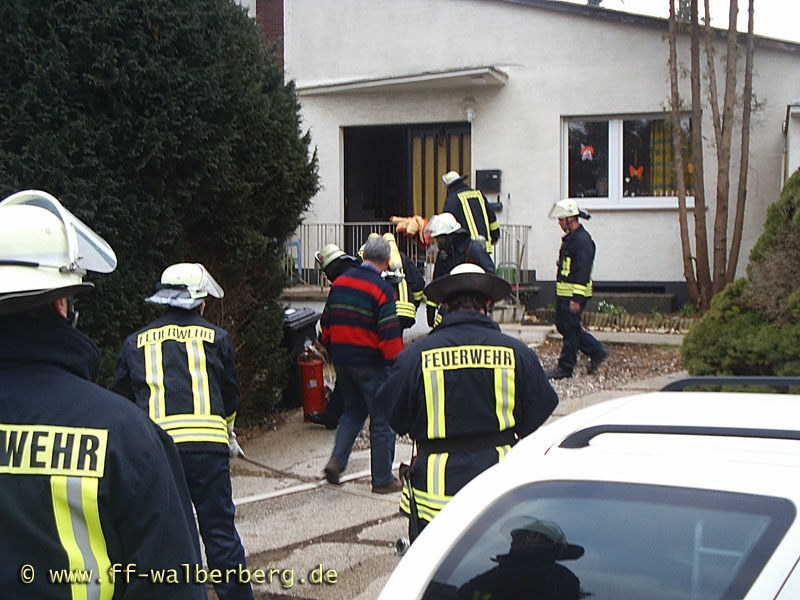 Beim Eintreffen der Feuerwehr brannte ein Elektrogerät im Innern des Gebäudes. Dieses wurde unter umluftunabhängigem Atemschutz mit Hilfe der Kübelspritze gelöscht.