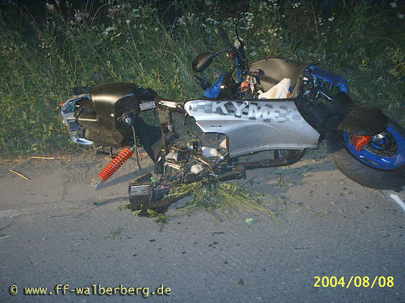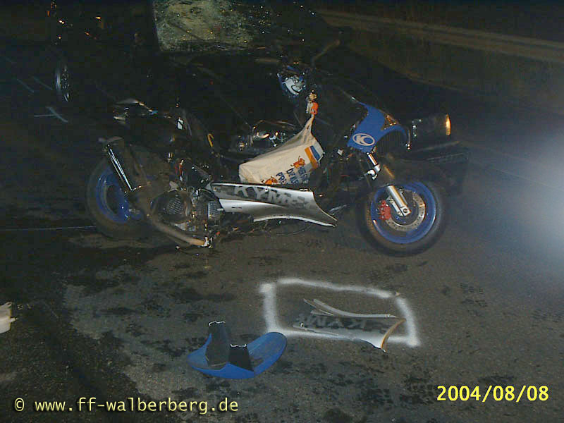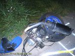 Kollision eines Kleinkraftrades (Roller) mit einem PKW im Kreuzungsbereich.